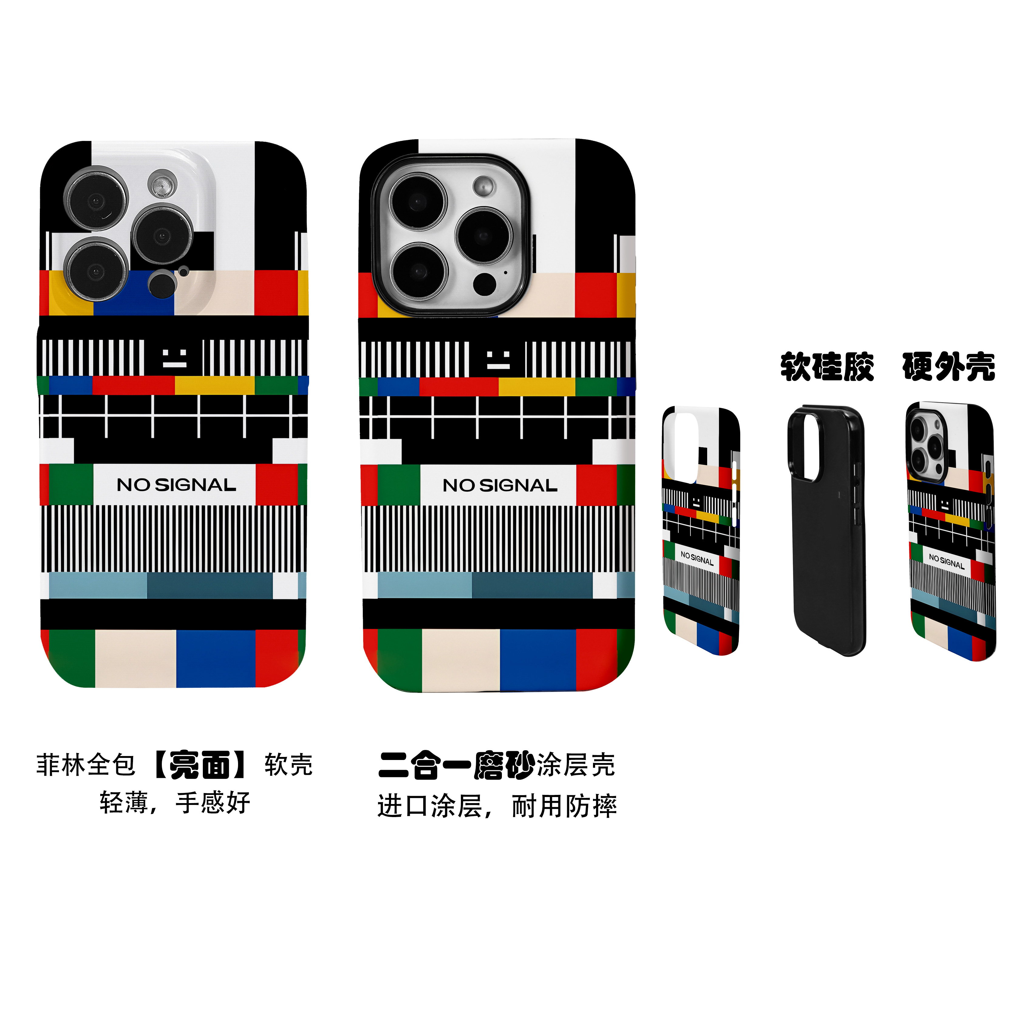 没有信号创意格子撞色菲林二合一手机壳适用苹果17nova14华为p70mate60小米15opporen14ovivo荣耀300iPhone16
