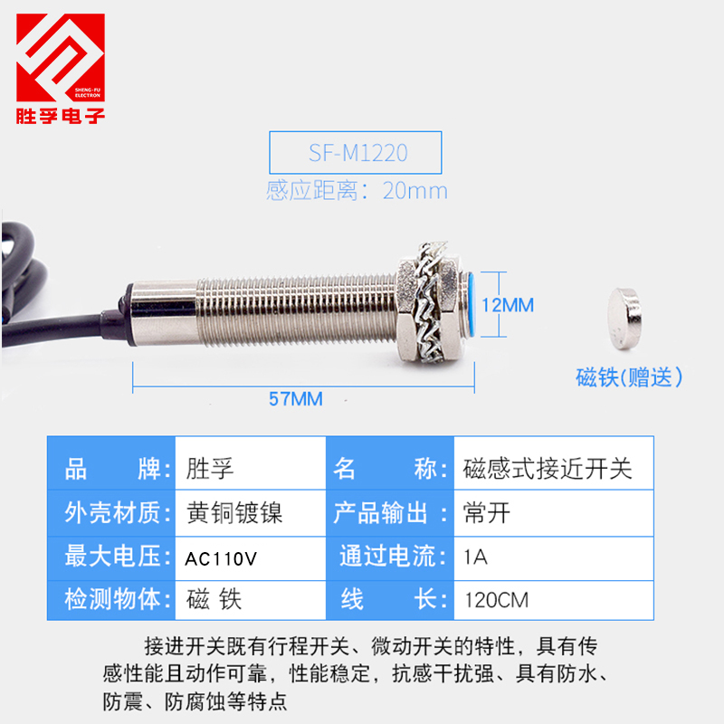 磁性感应开关接近开m关磁铁计数器用二线常开霍尔传感器直流胜孚