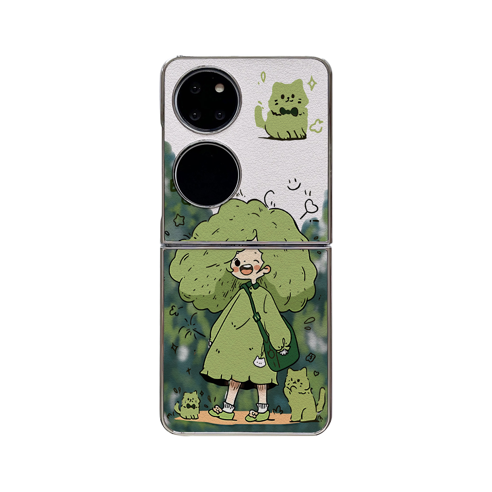 热瓜适用华为P50pocket手机壳Pocket2折叠屏保护套电镀可爱绿色斜挎包女孩银边pocket2高档翻盖视窗全包潮套