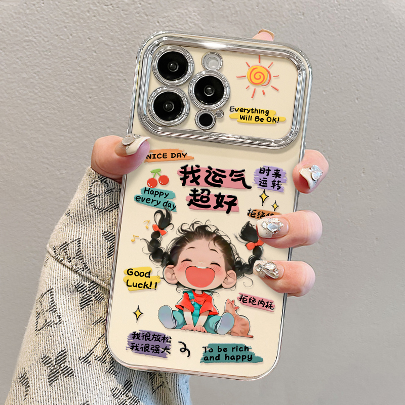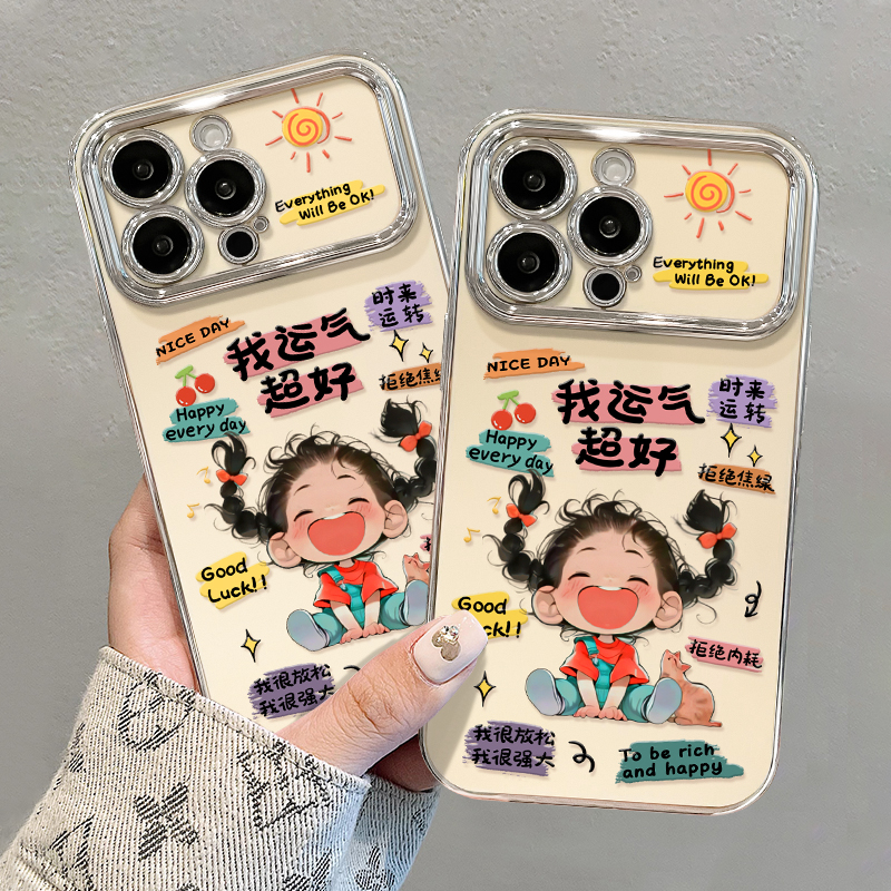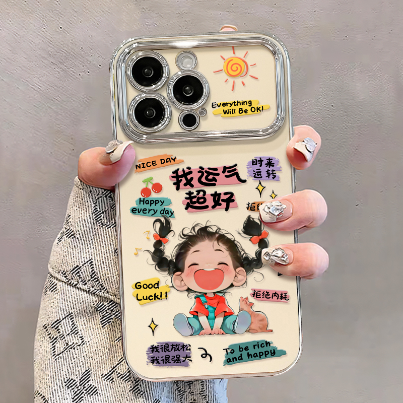 适用于opporeno14手机壳新女款reno13pro/12电镀视窗findx8/x7运气超好女孩挂链11/10全包硅胶a93s防摔保护套