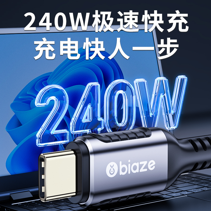 毕亚兹雷电4数据线USB4全功能双typec公对公PD240W100w快充40Gbps/8K高清3视频适用苹果15手机华为笔记本电脑