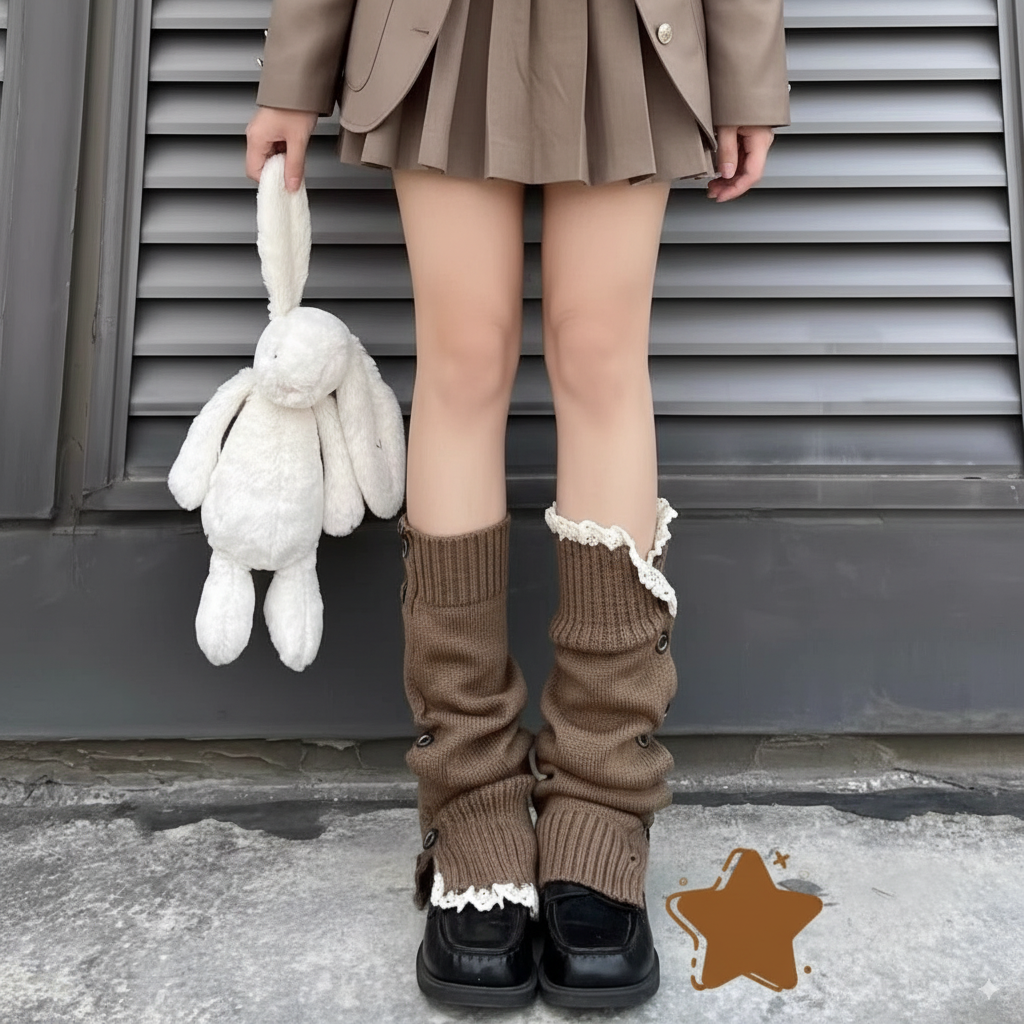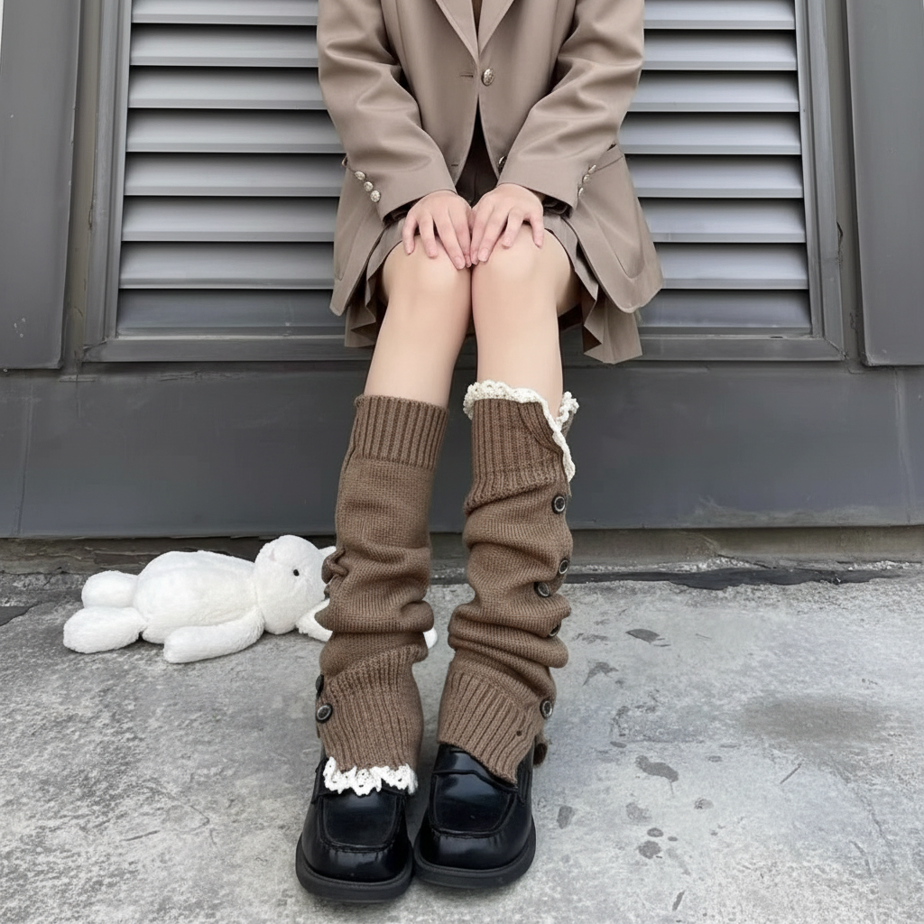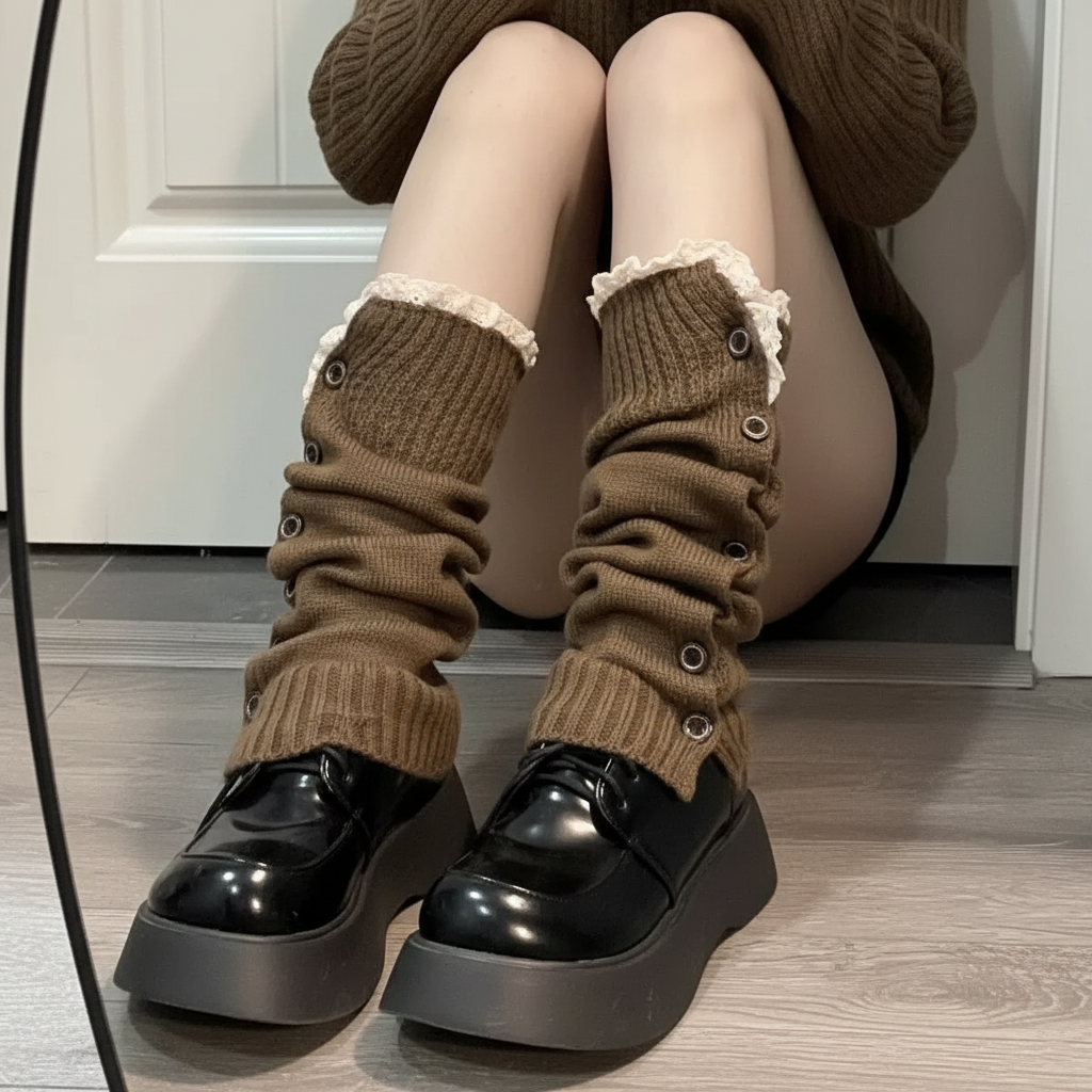 纯色百搭纽扣腿套美拉德花边堆堆袜套辣妹y2k腿袜小腿袜子女黑色