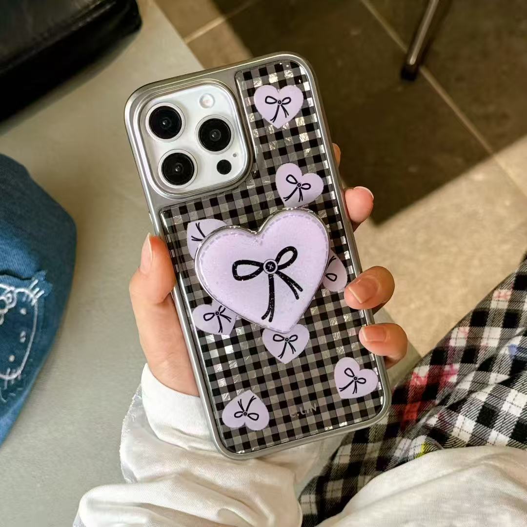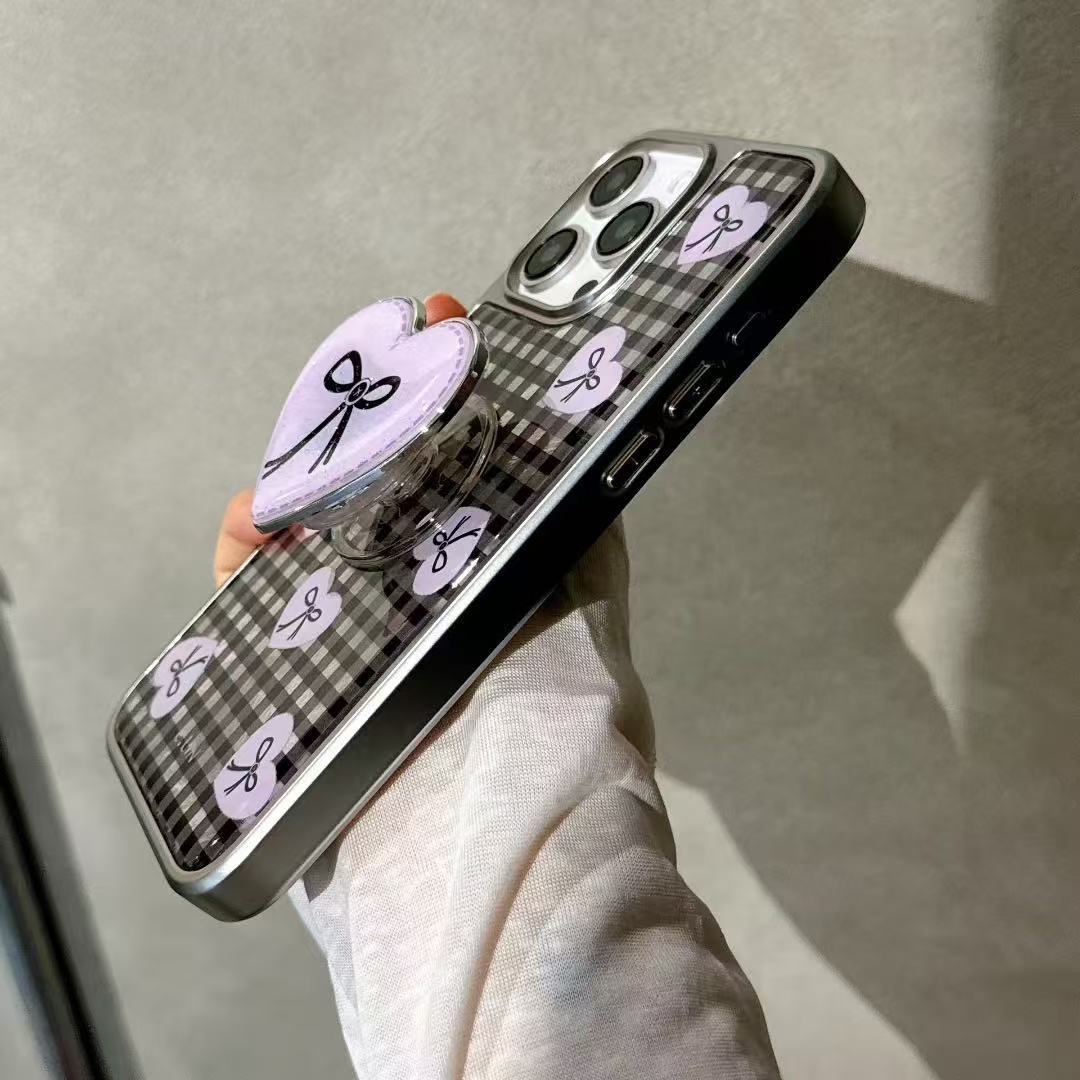 淳于亦韩系ins风黑格纹蝴蝶结适用苹果16promax手机壳15pro防摔保护套14/13磁吸支架12/11上镜时尚创意个性壳