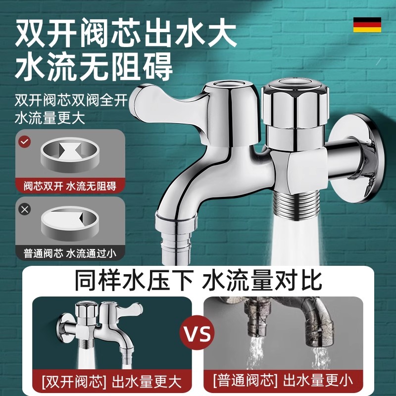 洗衣机水龙头一分二一进二出接头双出水开关家用三通龙头螺纹全铜