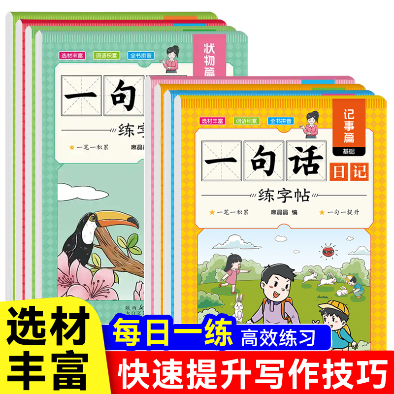 一句话日记练字帖一年级小学生专用二年级三年级字帖每日一练上册下册看图写话专项训练优美句子描红练字本练习写字积累词语主题