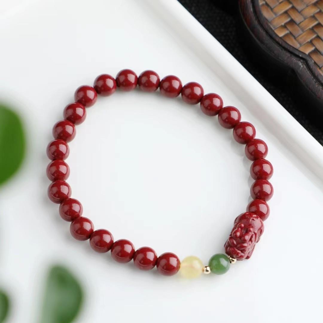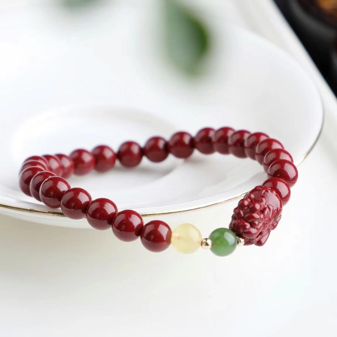 原矿朱砂手链 帝王砂手链手串搭配貔貅 高含量帝王红手链手串
