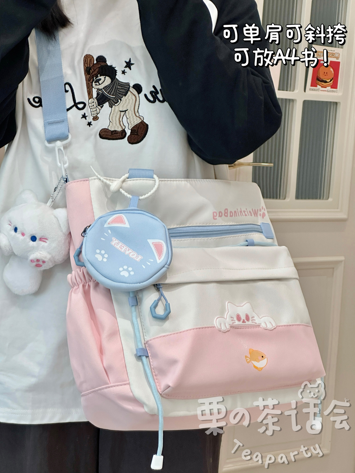 茶话会可爱斜挎包少女手提袋高中学生女生补习上课包大容量单肩包