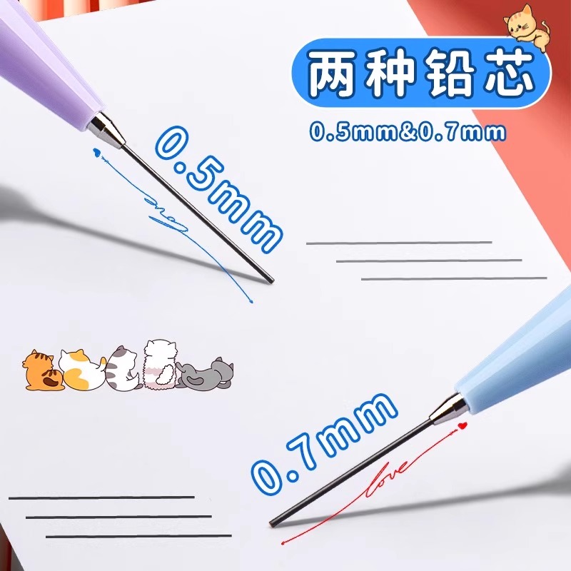 晨光馋猫小卖部自动铅笔小学生专用不断芯自动笔0.5握笔姿势可爱女生用高颜值0.7写不断的自动活动铅笔芯铅芯