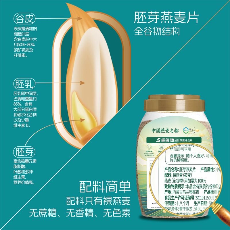 阴山优麦纯燕麦片有机裸燕麦孕妇无添加蔗糖营养早餐即食冲饮麦片