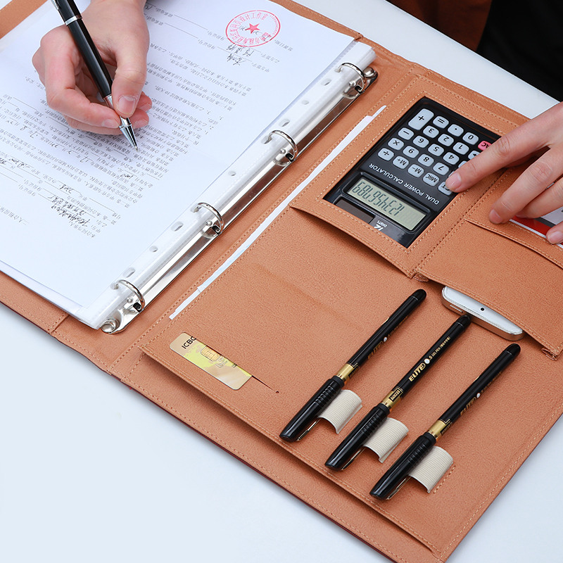 A4多功能文件夹办公用品垫板商务带F计算器皮质资料夹资料册活F页