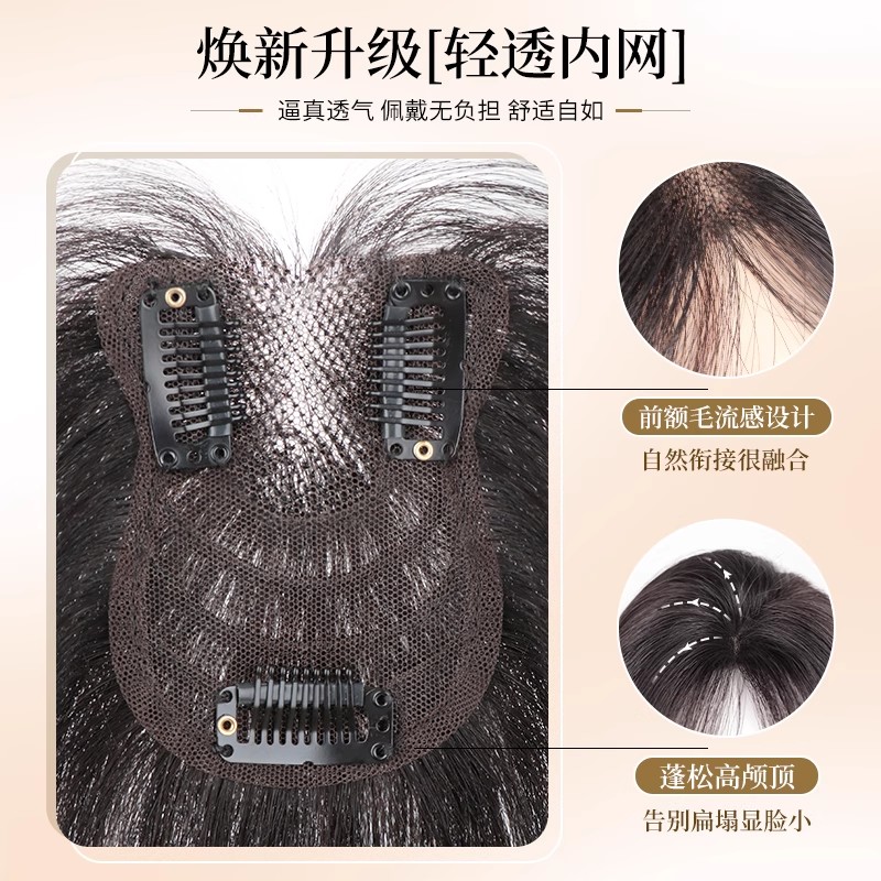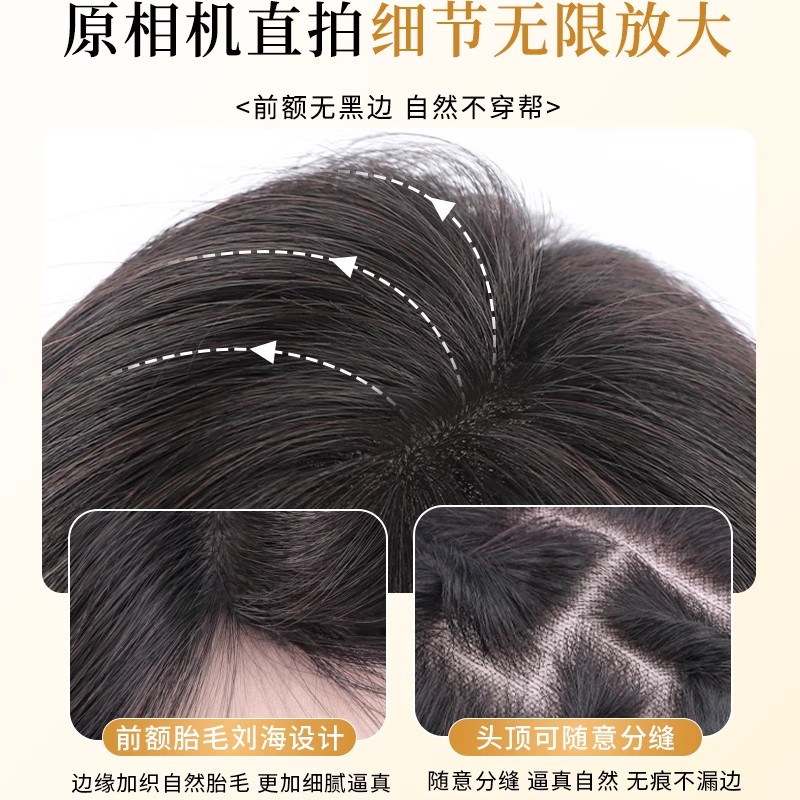刘海假发女片头顶真发补发高颅顶增发量蓬松遮白发自然无痕假刘海