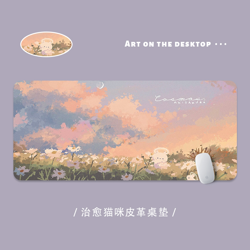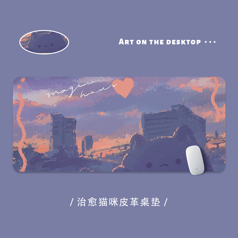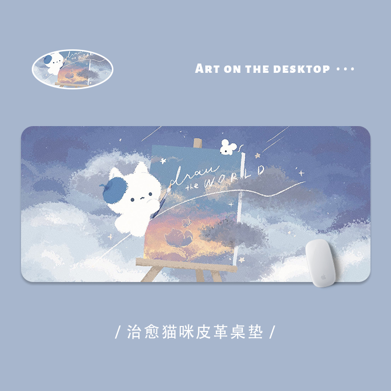 小清新猫咪鼠标垫桌垫大号免洗防水皮革卡通女生夏天防潮学生写字