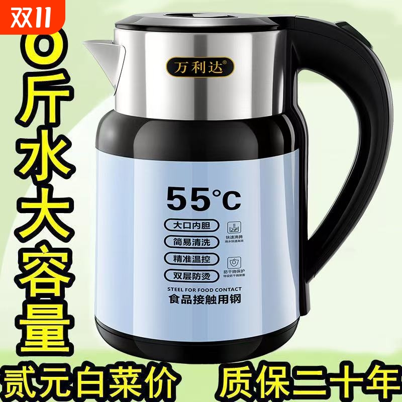 万利达智能保温电热水壶自动断电烧水壶家用恒温开水壶大容量防烫