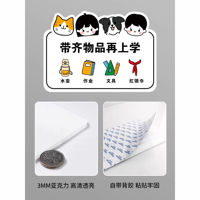 出门提示牌磁吸带齐物品再出门关闭燃气提示牌可爱卡通一二布布亚克力创意门外装饰贴纸关好门窗水电提示墙贴