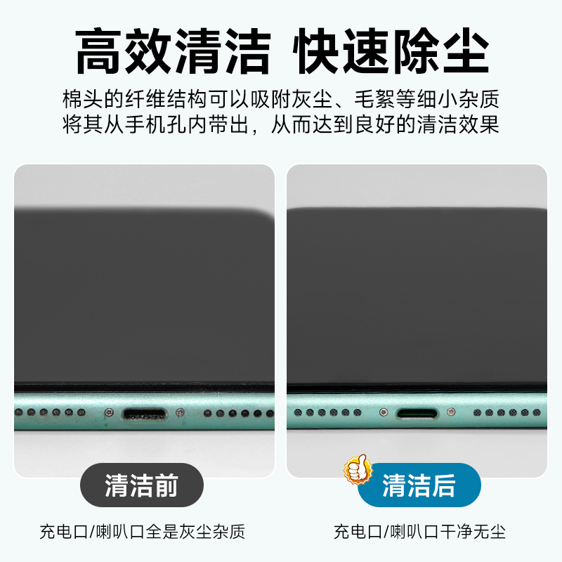 超小棉签手机充电口清洁棉棒喇叭声音听筒耳机孔屏幕缝隙清灰除尘