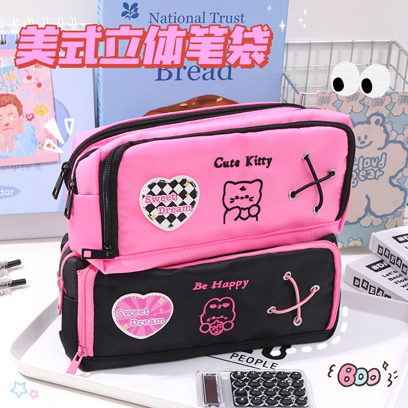新品便携分类开学季大容量笔袋学生美式文具盒收纳包女生笔盒