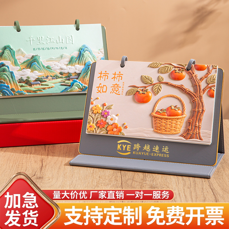 2026年企业台历定制diy简约国潮风高档皮质桌面办公记事照片日历创意订做logo商务送礼广告马年月历来图定制