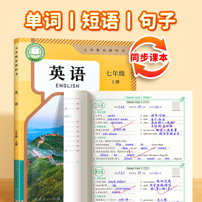 【易蓓】初中英语背记清单同步人教版外研版译林新课本必背单词短语句子语法重点知识汇总七八年级初一二三随堂笔记课堂预复习书