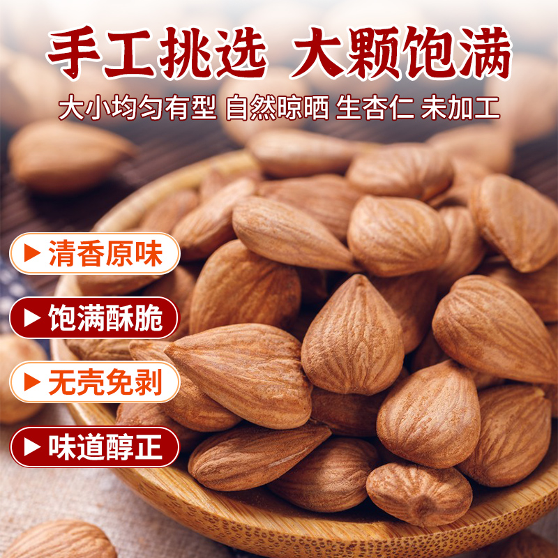 新疆甜杏仁无壳坚果原味无添加天然化痰止咳杏仁大颗粒官方正品