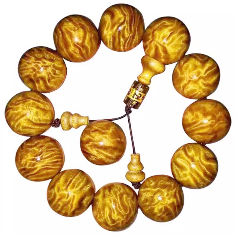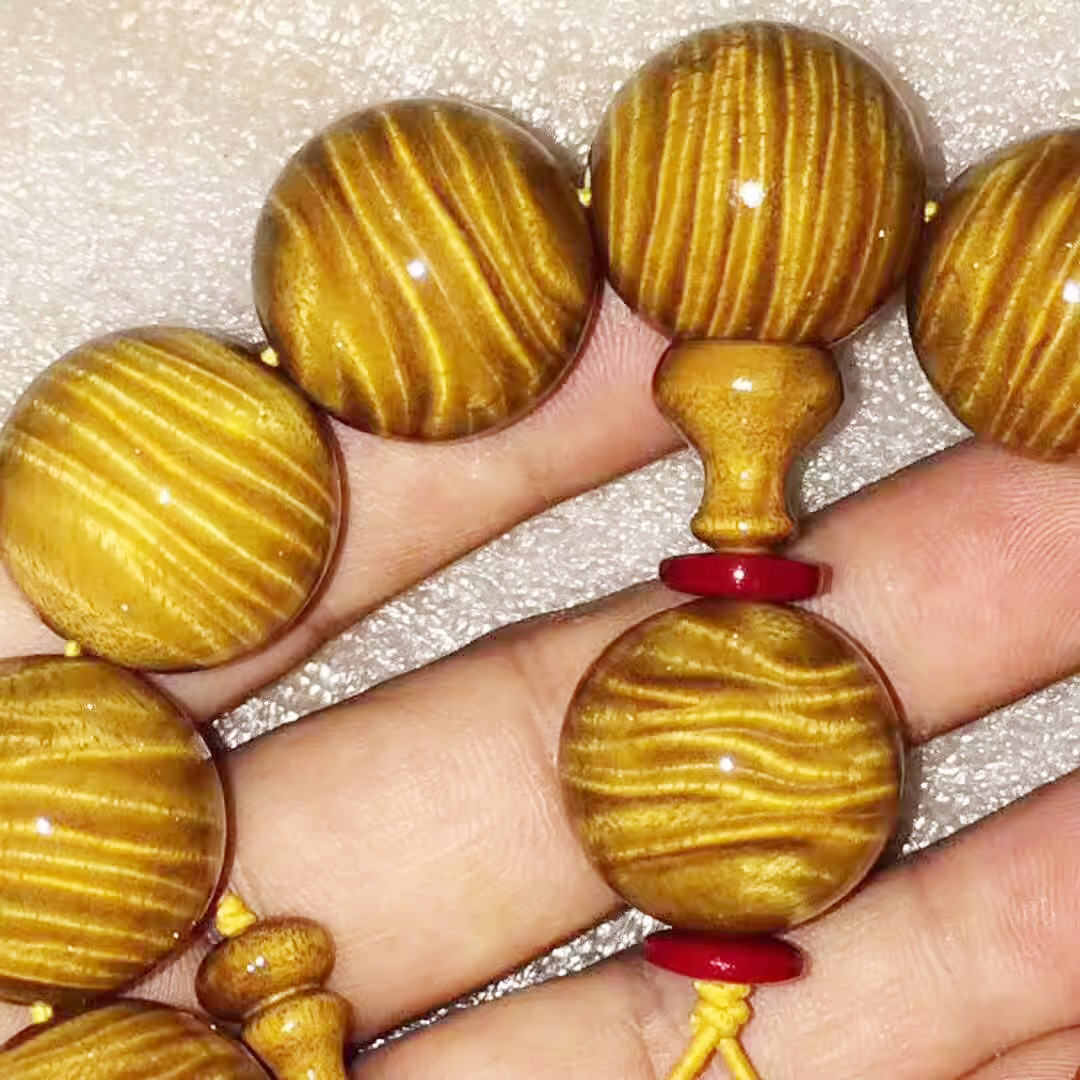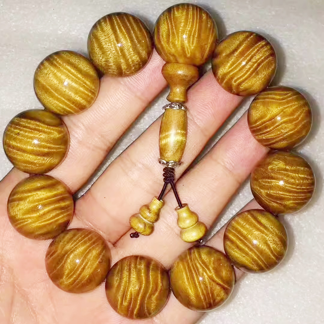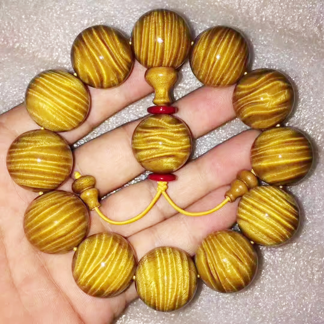 天然大叶楠木2.0龙胆纹水波纹金丝手串男女士佛珠手链108颗盘玩款