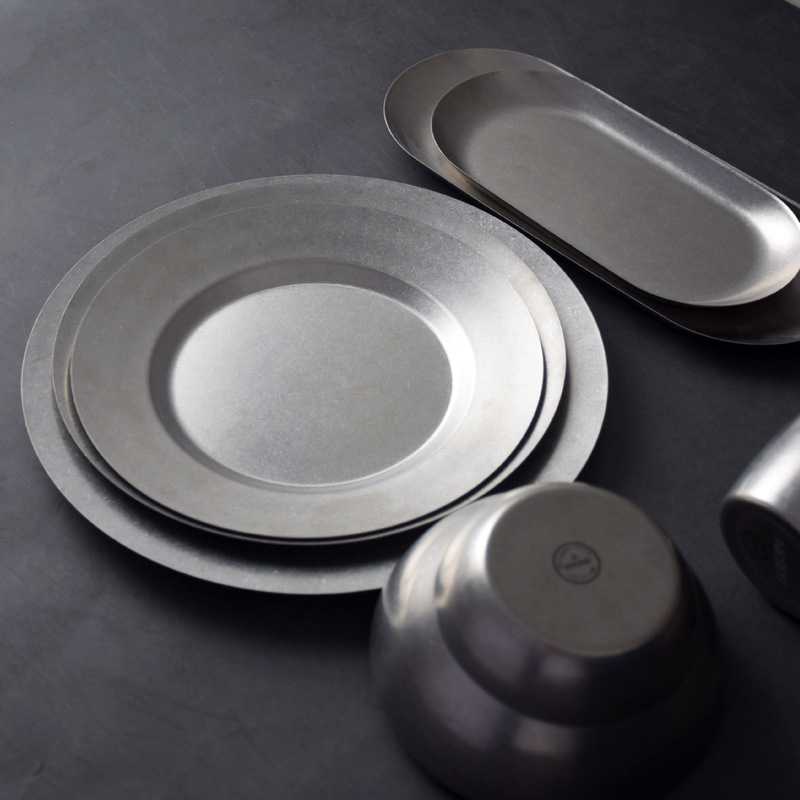 复古磨砂青花系 碗盘杯子椭圆碟餐具不锈钢牛排意面盘子餐厅摄影
