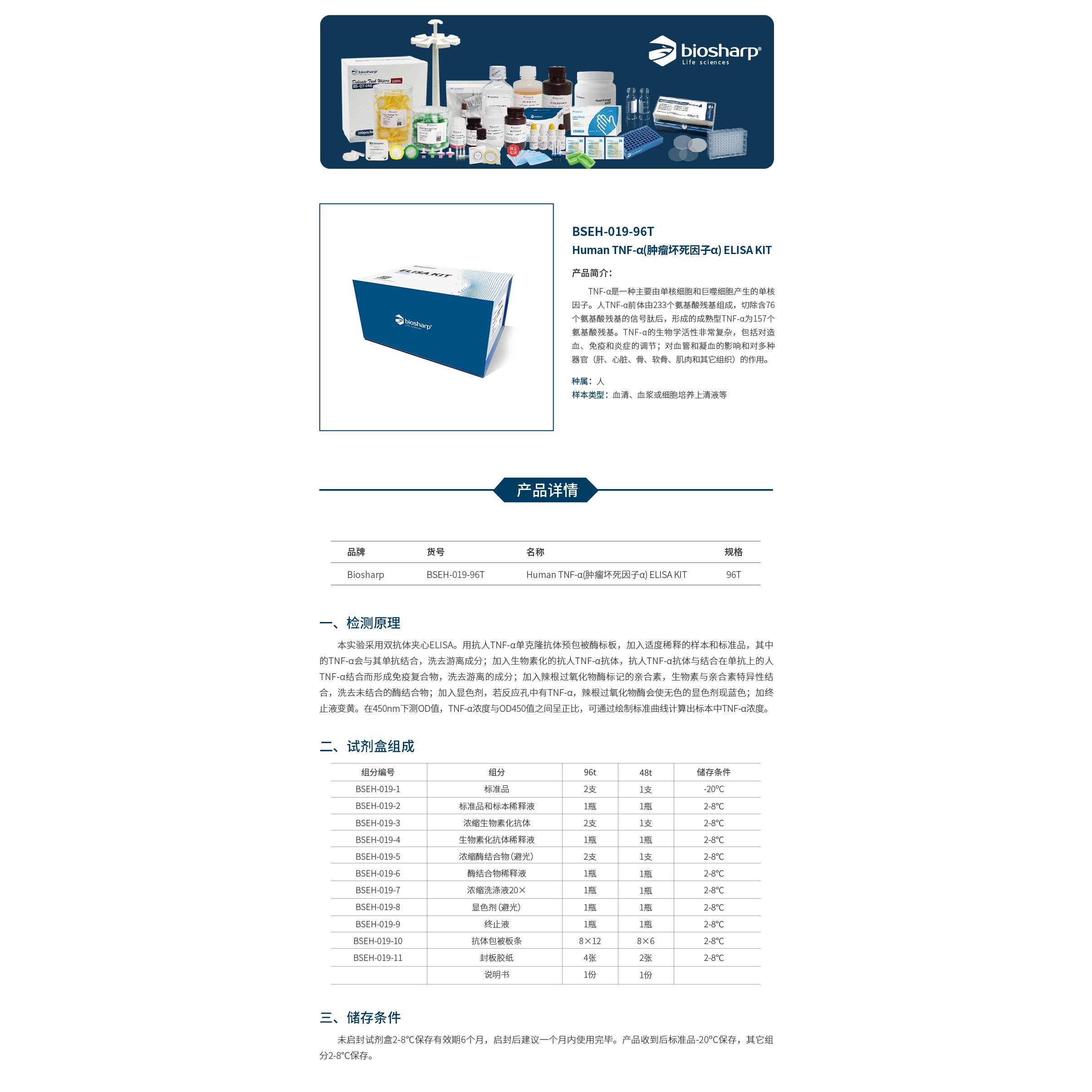 BSEH-019-96T Human TNF-α (肿瘤坏死因子α) ELISA KIT