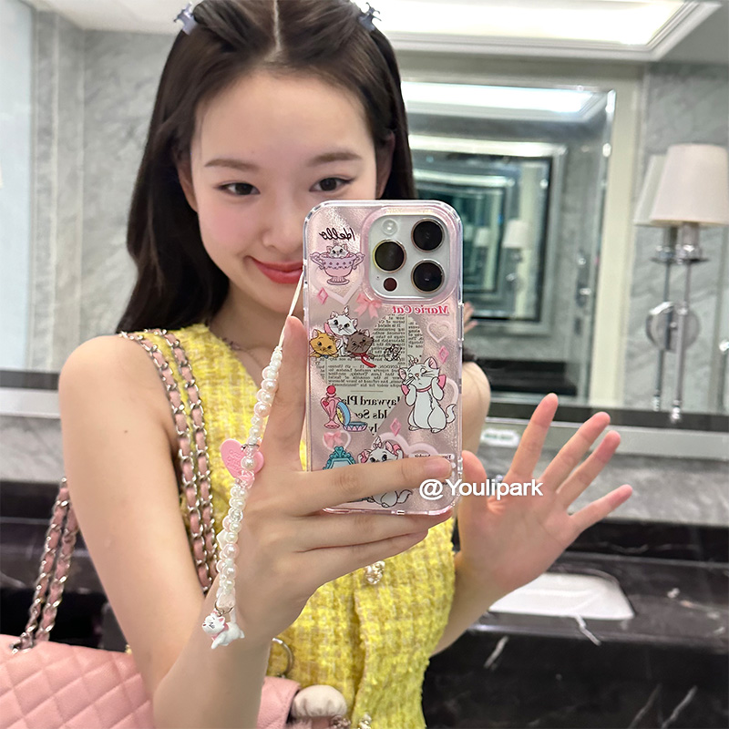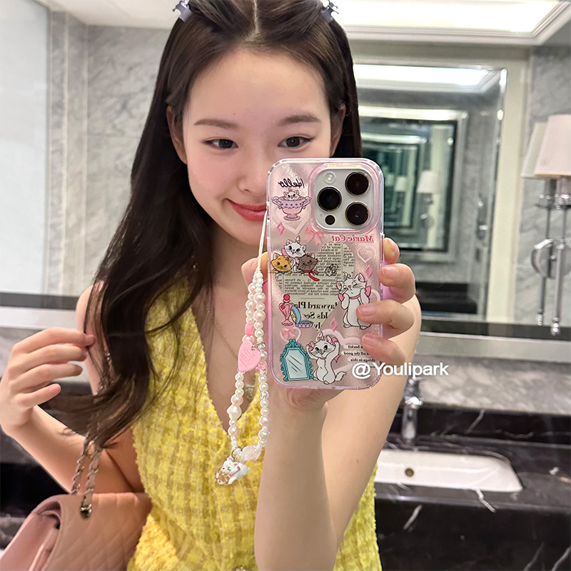 由里公园ins可爱少女心粉色卡通玛丽猫适用16苹果17ProMax防摔手机壳iPhone17华为mate60pro/17Pro软14Promax