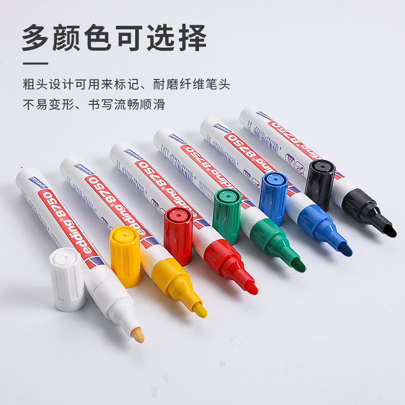 德国edding8750艾迪防油耐高温金属油漆笔油面记号笔白色防水不掉色油面工业用油污漆面耐磨标识笔油污笔符合