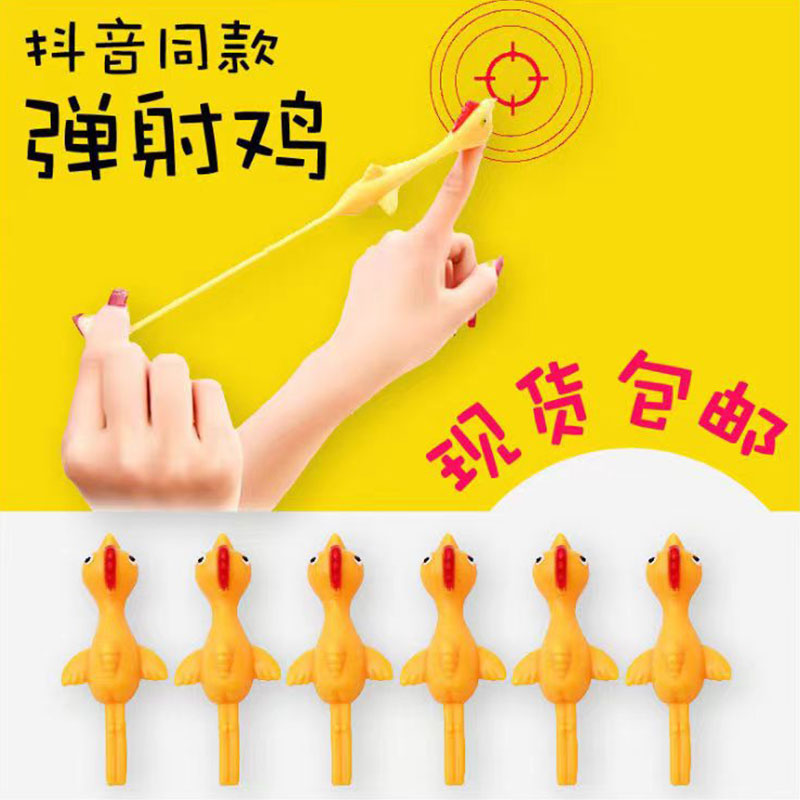 网红同款粘墙弹射小鸡的弹弓解压小玩具飞鸡手掌减压神器手指软胶