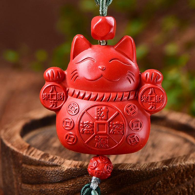 天然原矿朱砂精品红砂车挂八宝莲花九宫八卦财气猫包挂后视镜挂件