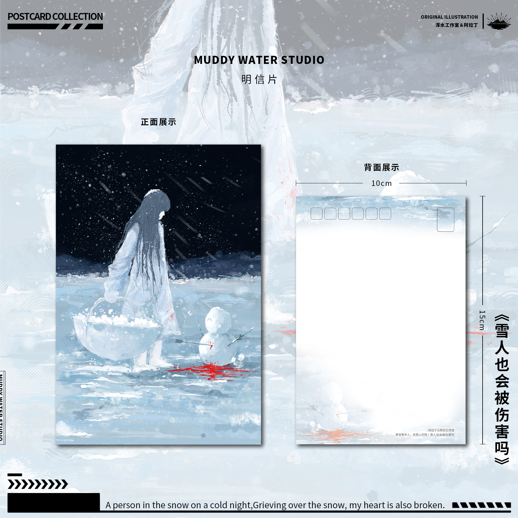 「雪人也会被伤害吗」原创手绘插画明信片小众黑暗创意贺卡礼物