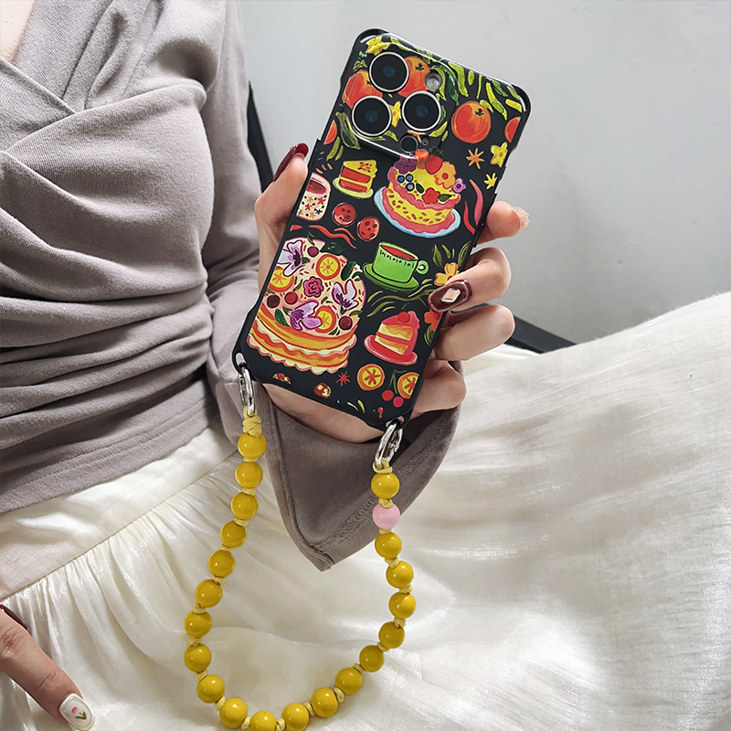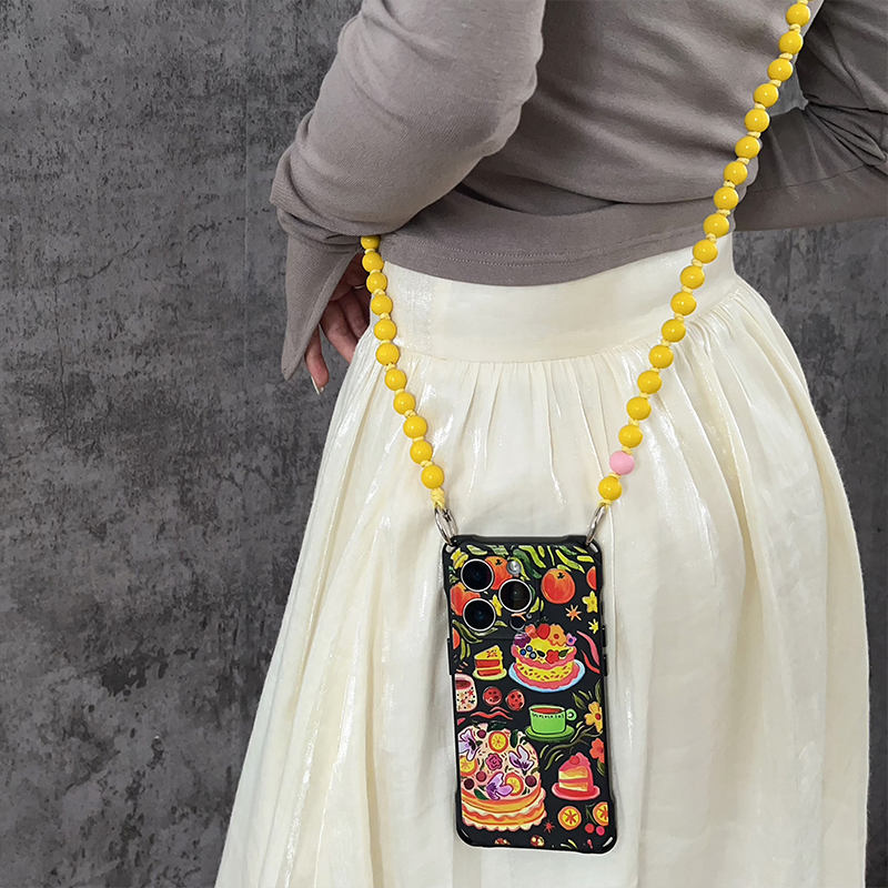 解苦以甜~原创链条斜挎橘子蛋糕手机壳适用于苹果16Pro出行可背小米15ultra背带斜跨vivox200pro带挂绳pura70