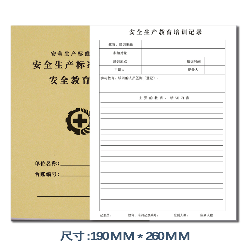 安全教育培训记录本牛皮纸安全标准台账安全台账安全生产检查教育培训企业公司记录簿登记本