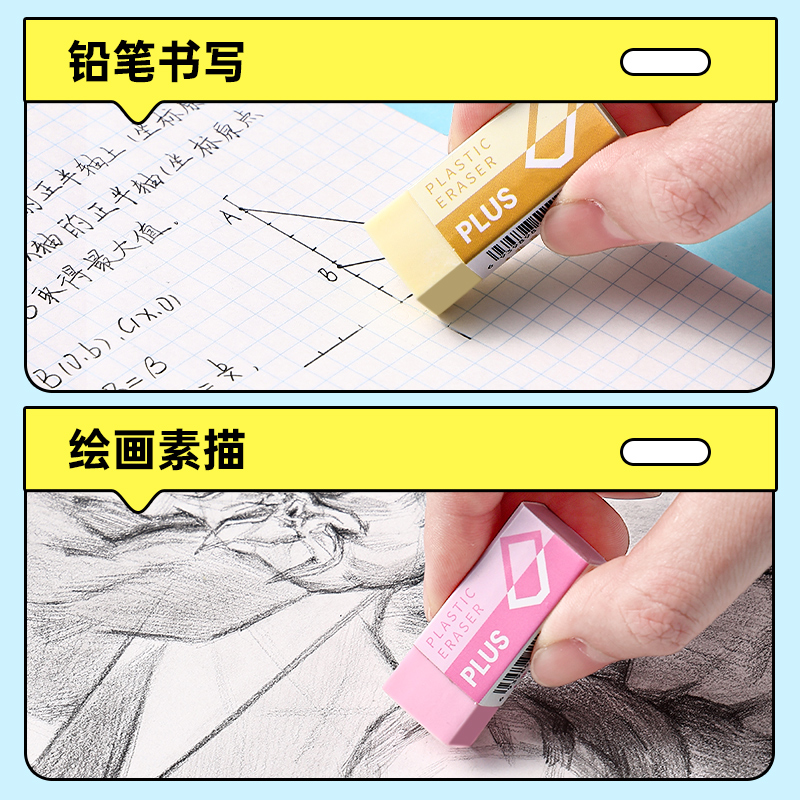 日本Plus普乐士橡皮擦淡色系小学生擦的干净像皮不易留痕可爱创意ER-060N儿童美术素描绘画用不伤纸象皮檫