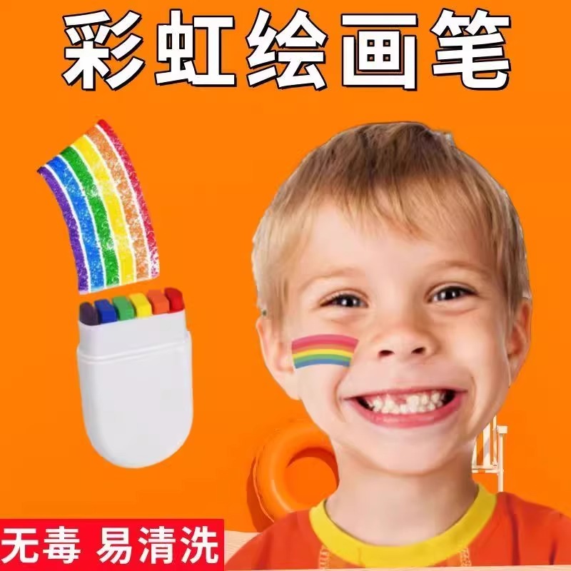 脸部彩虹人体彩绘笔可水洗彩虹棒六一舞台妆表演出运动会道具彩妆