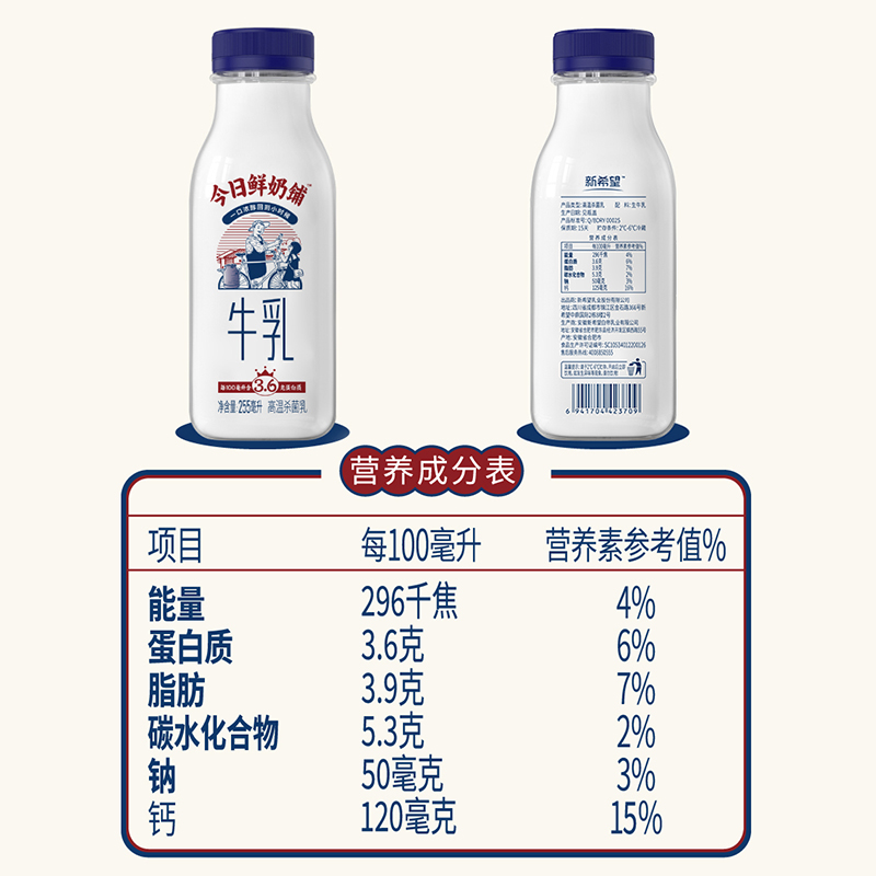新希望今日鲜奶铺牛乳255ml瓶装低温牛奶儿童营养早餐奶旗舰正品
