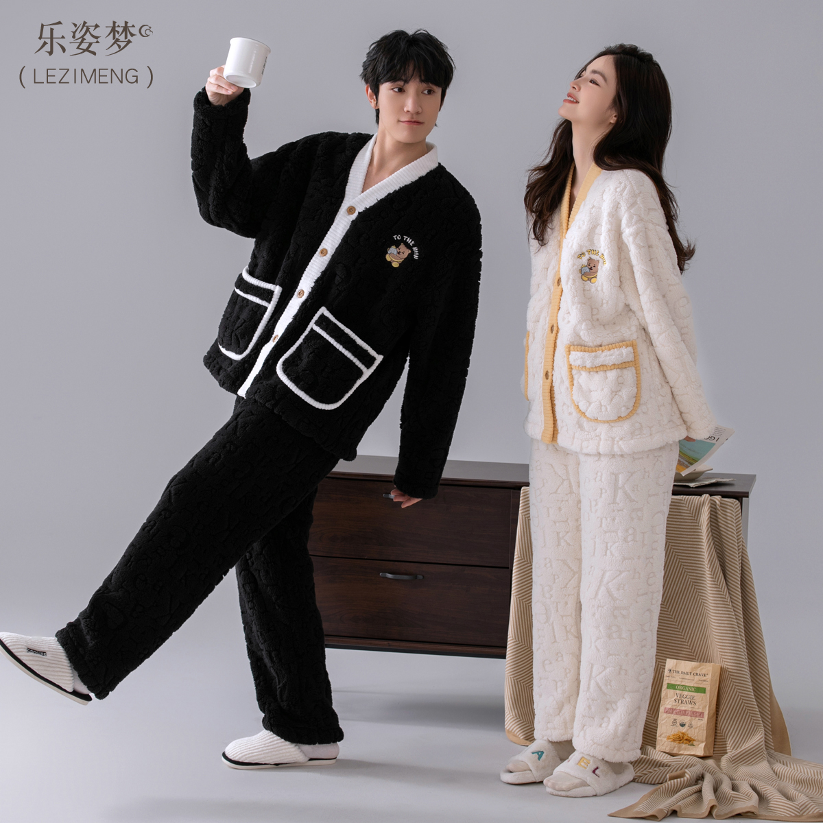 乐姿梦情侣睡衣冬季女珊瑚绒加厚可爱小熊秋冬天法兰绒男士家居服
