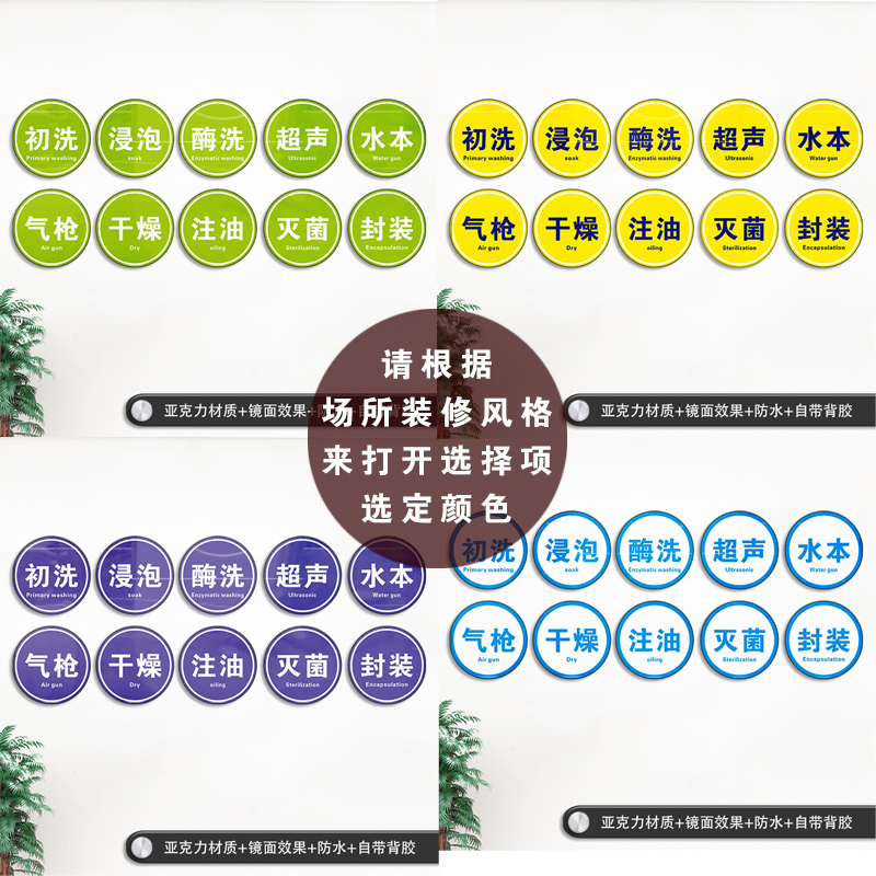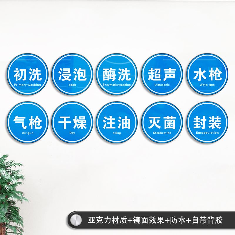 亚克力口腔医院清洗消毒步骤牙科诊所初洗酶洗灭菌流程标识牌墙贴