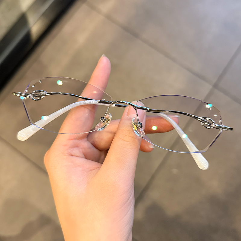 素颜无边框钻石切边近视眼镜女大脸显瘦可配染色镜片有度数眼睛架