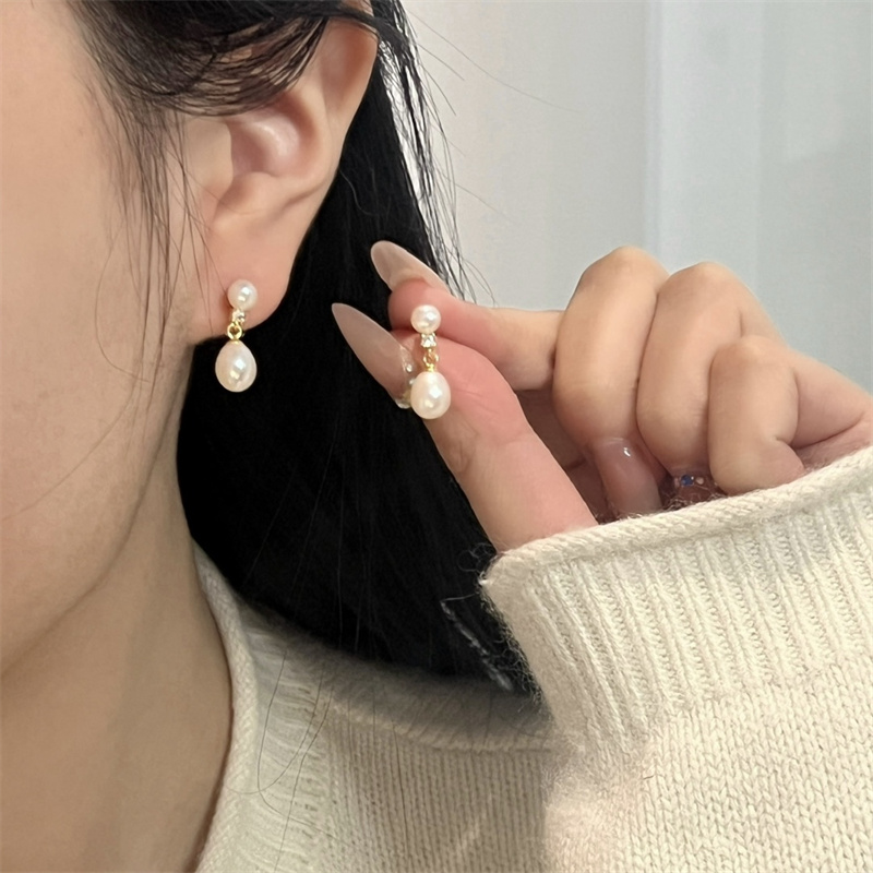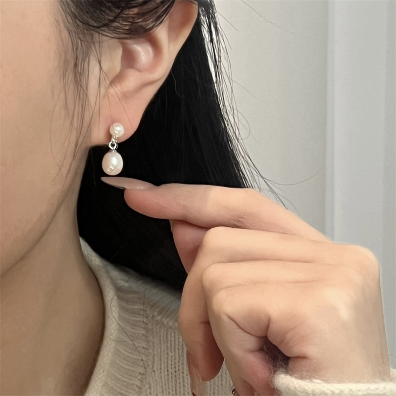 清新百搭双珠设计诸暨淡水珍珠通体S925银耳坠轻奢小众气质耳钉