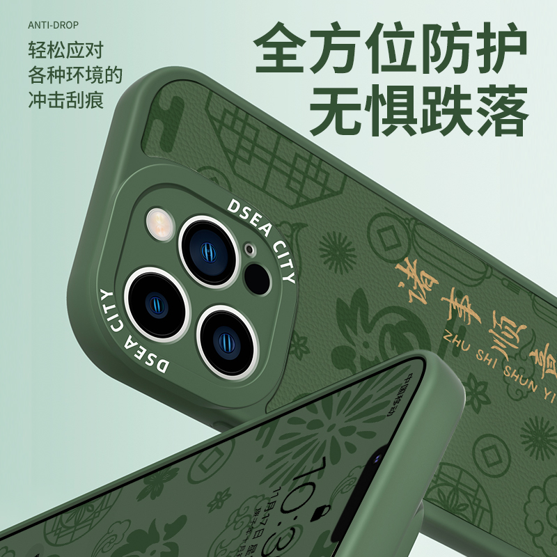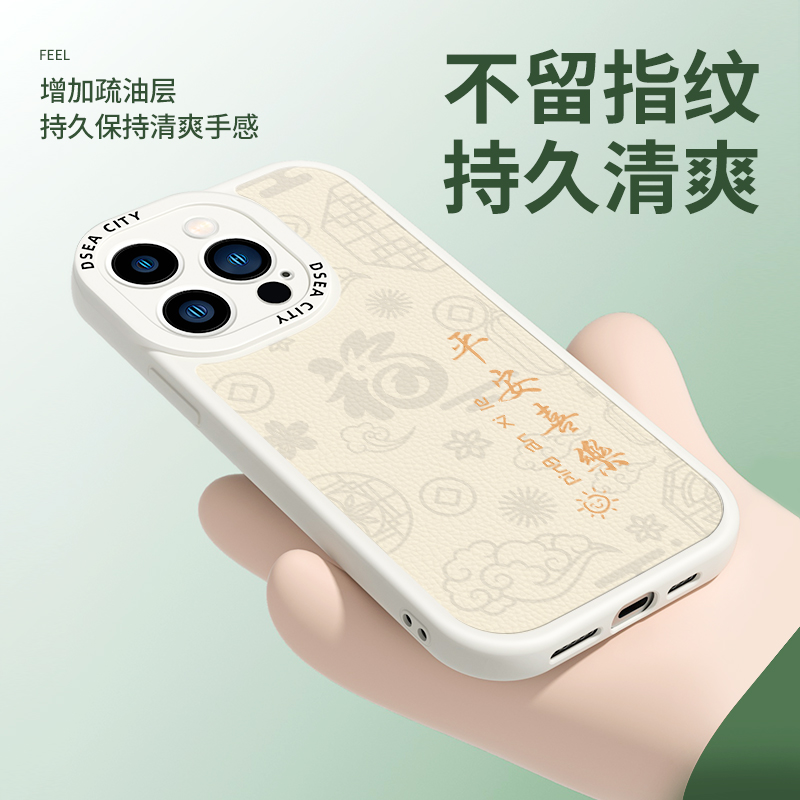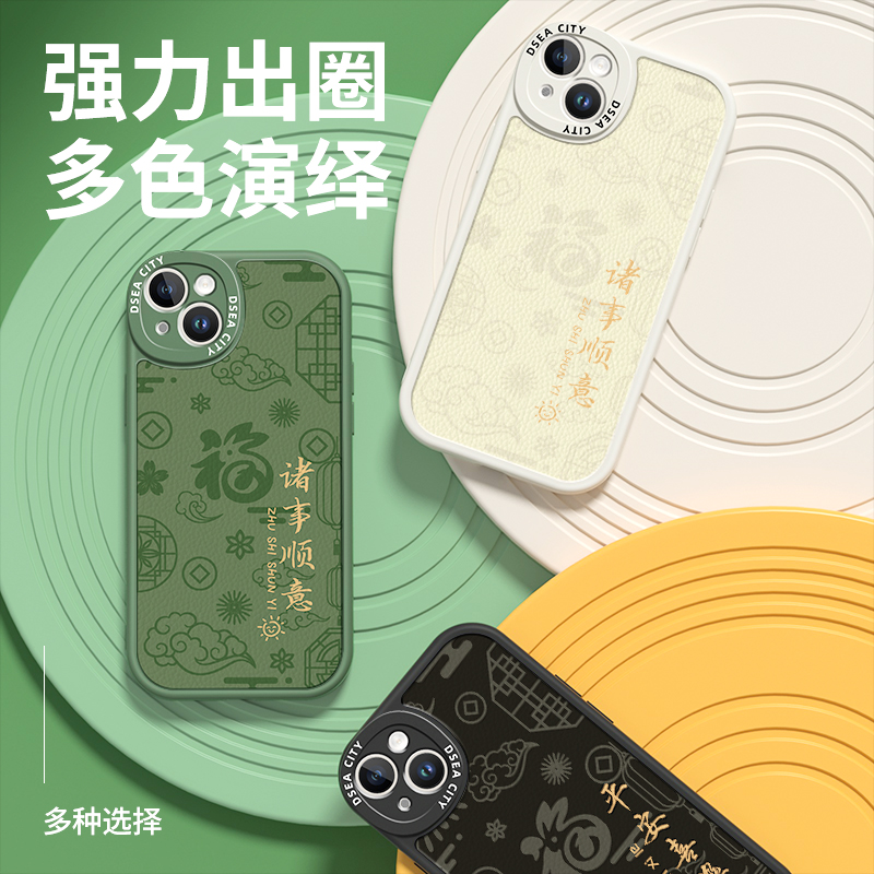 苍岭绿苹果14手机壳国风小羊皮适用iPhone13诸事顺意14pro新款12promax防摔全包11max软硅胶por平安喜乐