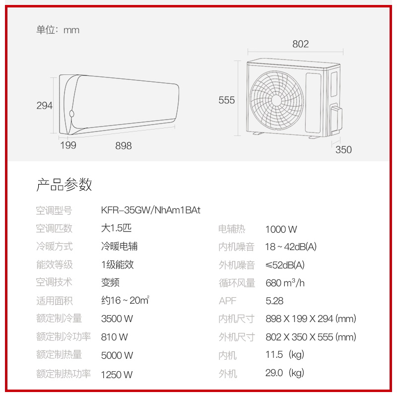 海尔小红花空调新一级能效1.5匹1匹2匹变频冷暖家用劲爽挂机35LCA