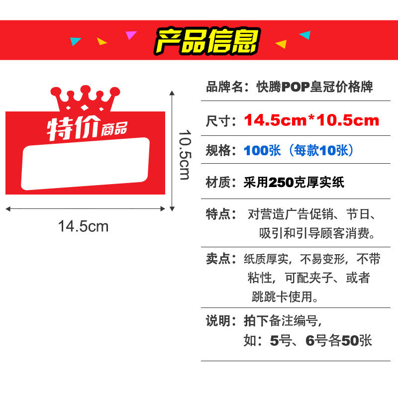 服装店皇冠标价牌促卡销商场超市特价广告牌打折扣标签牌价格牌