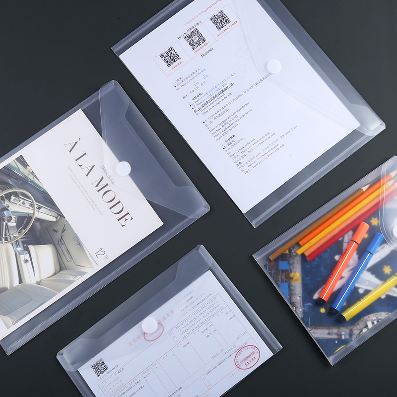 加厚透明文件袋A4大号防水收纳袋资料袋中号A5增值税发票专用袋按扣纽扣袋竖版档案袋合同收纳袋票据袋试卷袋