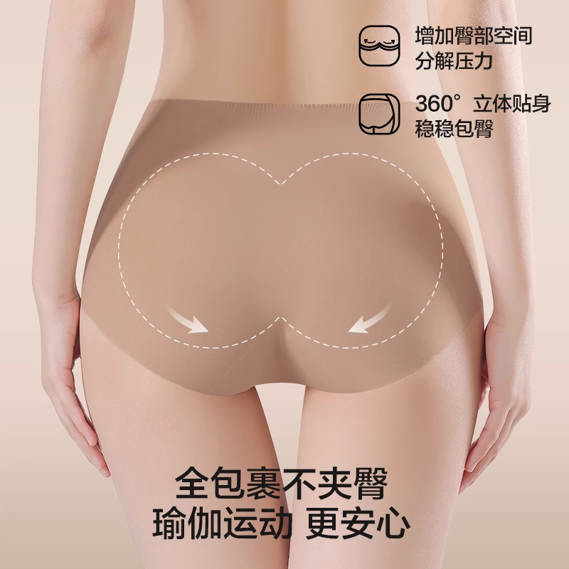 内裤女士夏季新款瑜伽健身隐形粉底液三角短裤抗菌无痕冰丝不夹臀