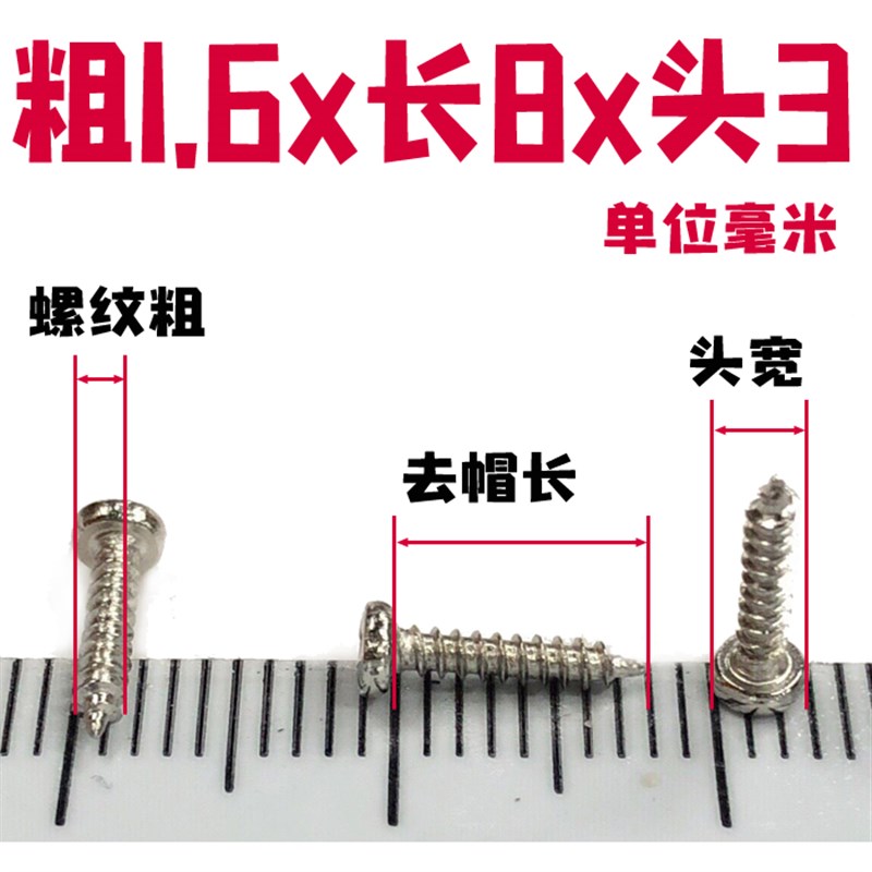 M1.6欧式底盒自攻尖尾钉特细加长钉子T形长方面小圆锁固定螺丝钉