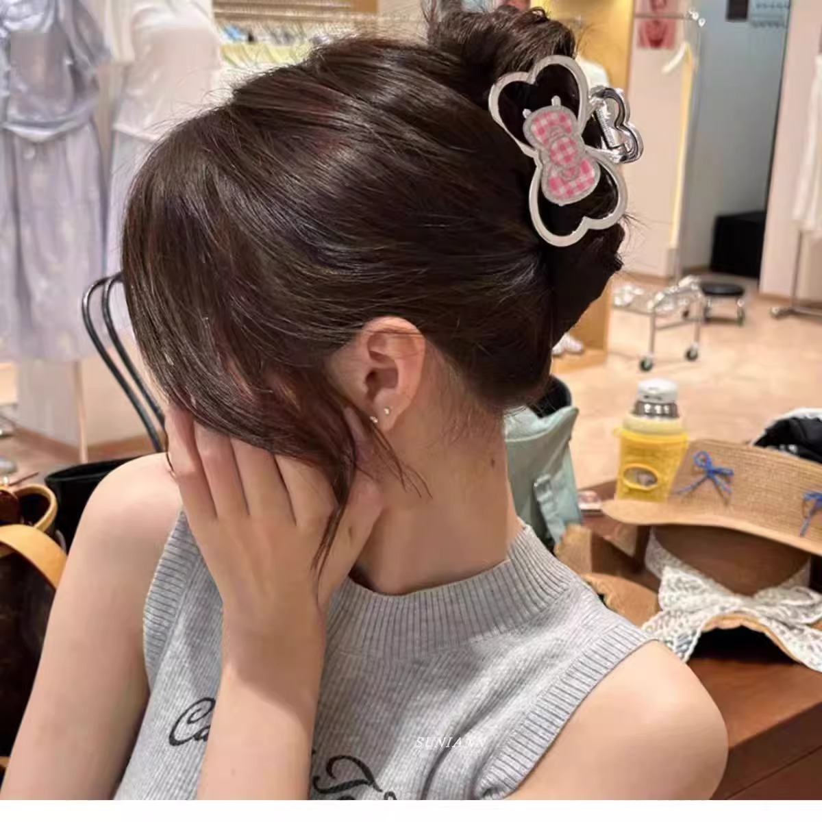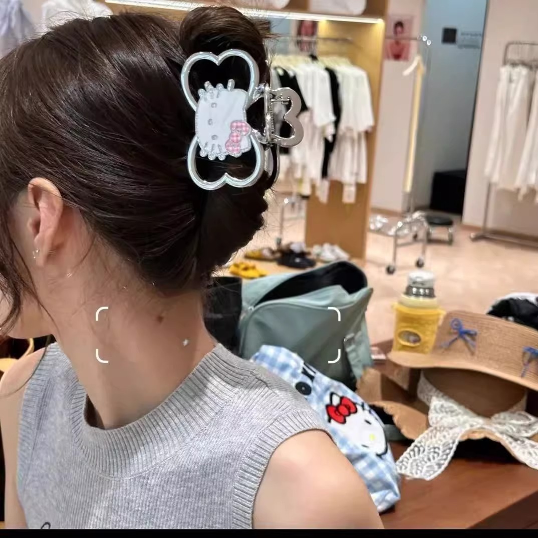 超级好看的抓夹鲨鱼夹kt猫HelloKitty半扎发饰后脑勺发卡闪闪猫咪