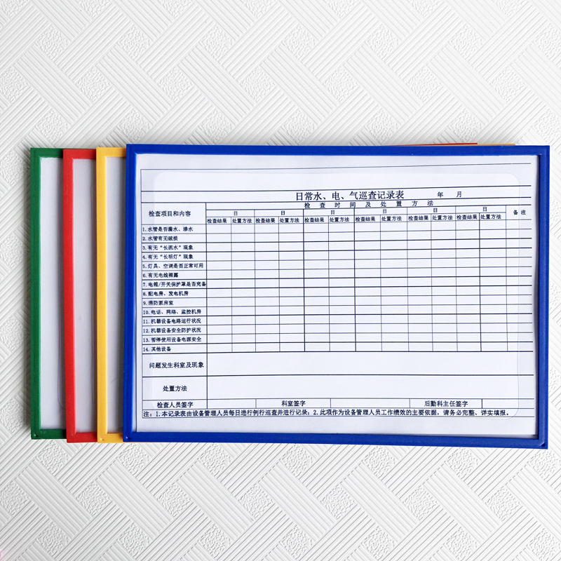 吉武A4工厂车间巡场点检表文件夹设备巡检记录表粘贴镂空磁性文件袋巡点检胶套A4目视化管理文件袋磁性点检表
