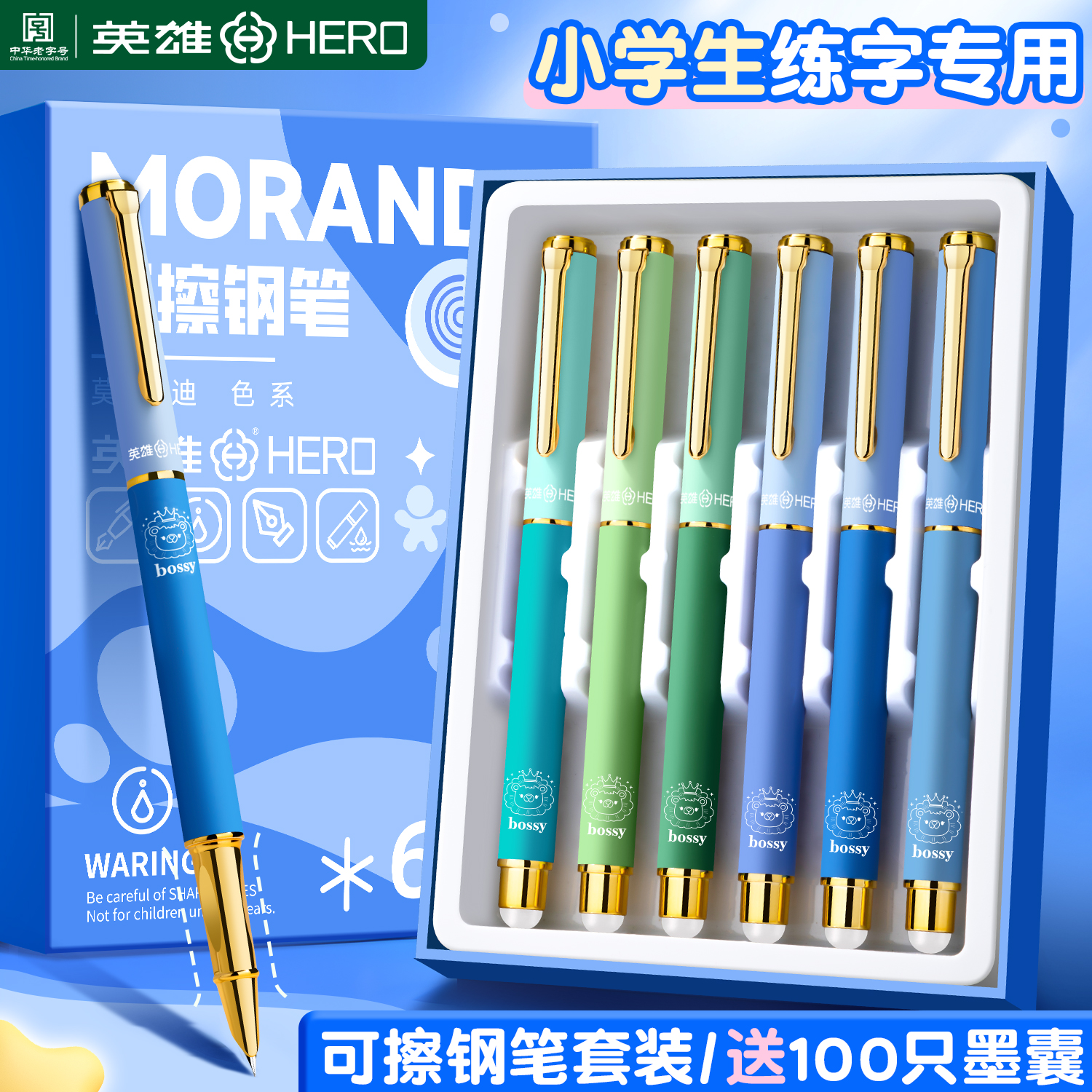 英雄可擦钢笔三年级小学生专用练字儿童热敏可擦钢笔可替换墨囊不漏墨橡皮可擦的四年级礼盒钢笔专用官方正品