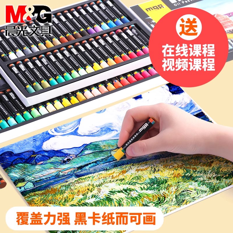 晨光重彩油画棒套装小学生专用48色软性丝滑蜡笔超软24色36色美术专用diy画涂鸦绘画全套工具